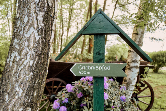 Das Zwitschern der Vögel und die naturnahe Umgebung laden zum Verweilen und genießen auf den Sitzgelegenheiten ein. Auf dem Erlebnispfad werden verschiedene Szenen aus der Krabatsage dargestellt.