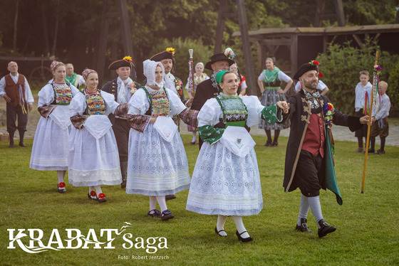 Da ihre Brautjungfern noch unverheiratet sind, tauchen bei den Družkas Elemente der Brauttracht in Rot statt grün auf. Die Zamame (die bisherige Patin wird zur Mutterstellvertreterin) trägt eine Haube als Zeichen der mütterlichen Funktion, welche sie an diesem Tag übernimmt. Sie behütet die Sittsamkeit der Braut und lässt der Braut keine unbedachten Freiheiten an diesem Tag. Wir haben uns allerdings im Sinne der unterhaltsamen Aufführung gegen eine schweigende, weinende Braut entschieden.