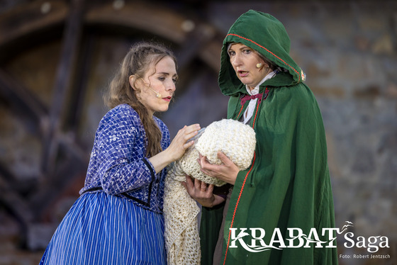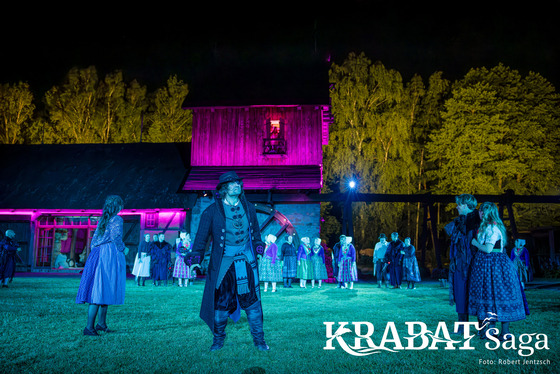Nach diesem kurzen Exkurs durch die Jahrhundert landen wir wieder in unserer Zeit, direkt vor der Schwarzen Mühle in Schwarzkollm. Überrascht sind wir darüber, was hier für ein reges Treiben herrscht. Überall eilen Menschen, einige in bunten sorbischen Trachten, ander in Handwerkerhosen. Es werden Tische und Bänke aufgestellt, Schirme gespannt, Essensvorräte in die Wirtsstube getragen und etwas abseits nochmal einige Szenen geprobt. Für was? Natürlich für die Krabat-Saga, die ihre Besucher*innen mit einer spannenden Geschichte, sorbischen Traditionen und selbstverständlich einer Menge Magie in ihren Bann ziehen wird. Die Sage um den Müllerjungen lebt hier an diesem Ort weiter und vielleicht werde andere, die nach uns kommen, auf ihrer Reise zurück in die Vergangenheit an dieser Stelle in unserem Jahrhundert innehalten, um die Geschichte des jungen Müllerburschen besser verstehen zu können.